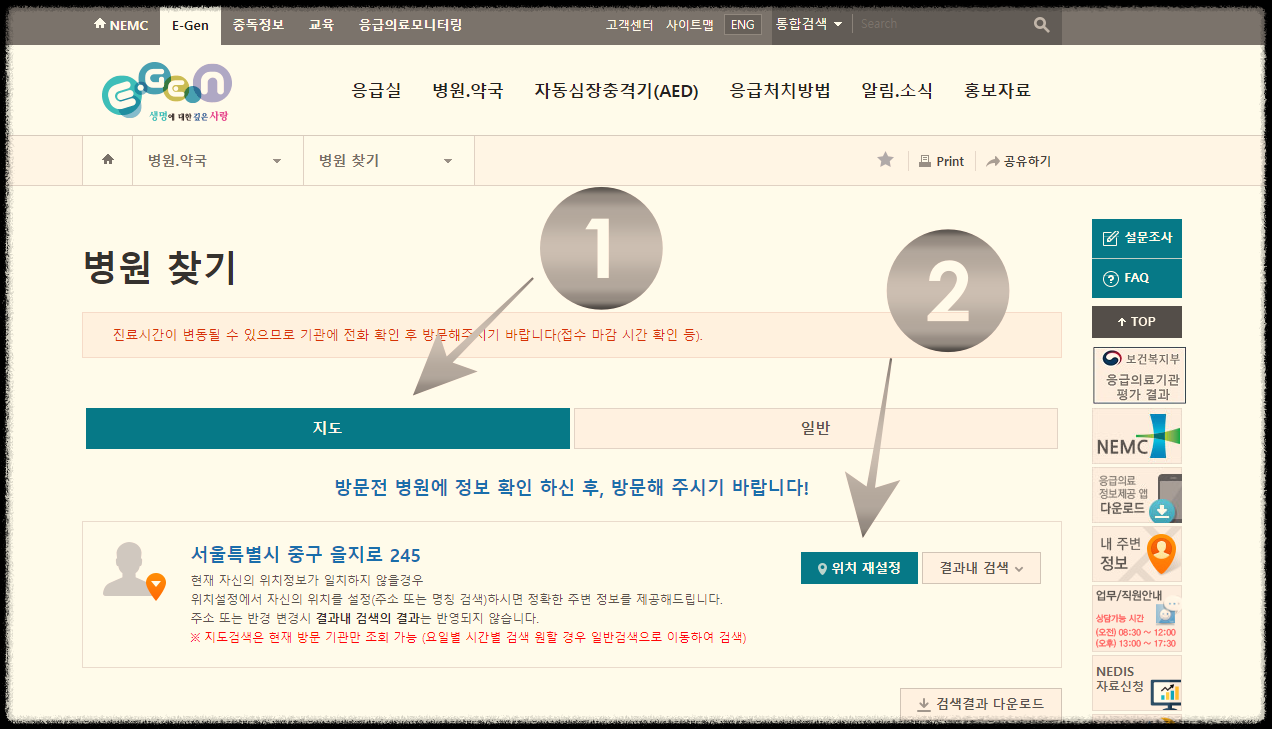 2. 응급의료포털사이트를 이용한 의료기관 찾기.