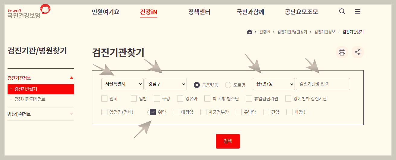 [ 예를 들어 위암 건강검진 검진기관을 검색할 때 ]